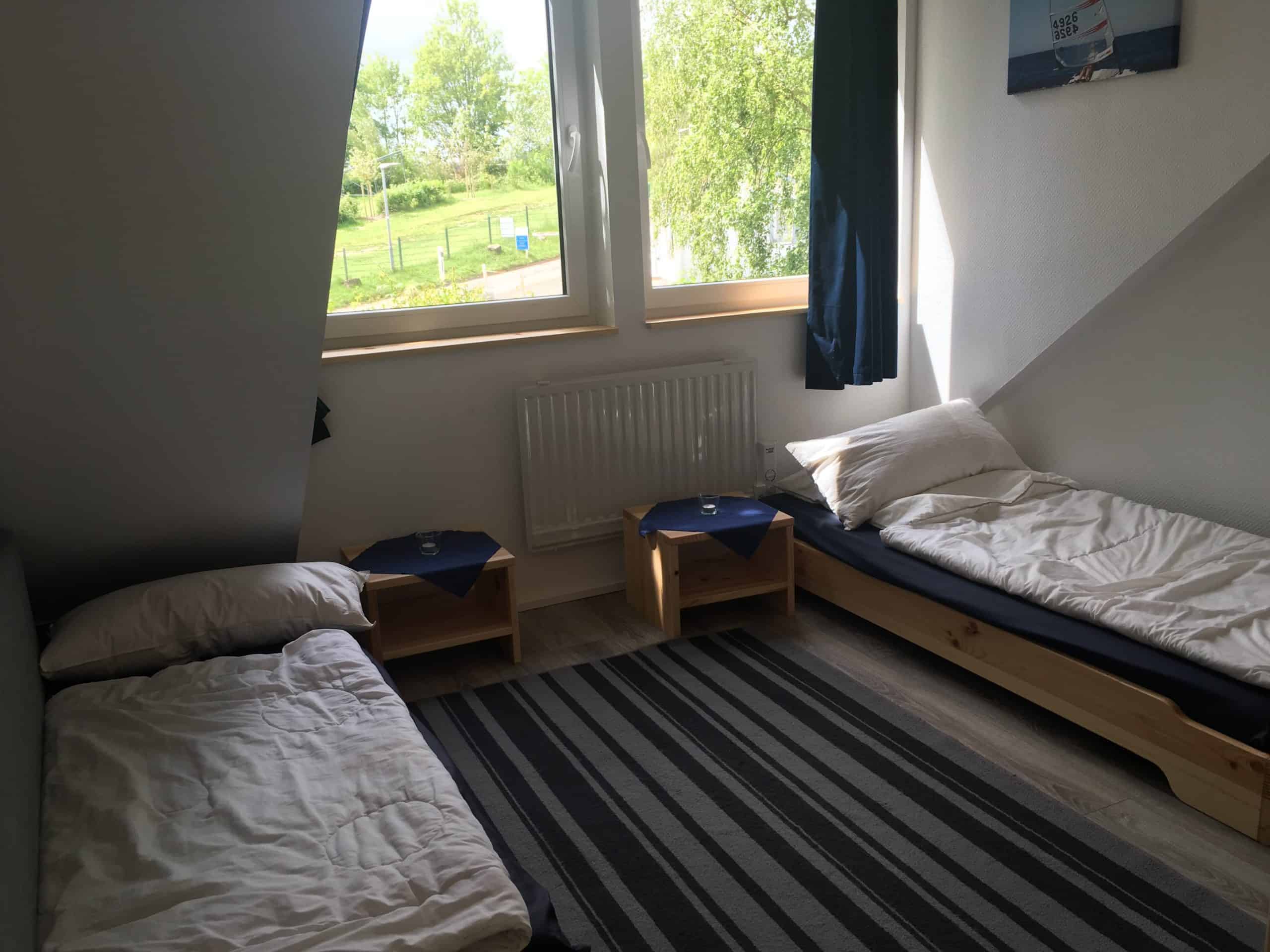 EG: mit Einzelbett, Pentryküche, Dusche/WC OG: 2 Einzelbetten (zusammenstellbar)